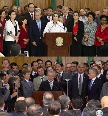 The lower photo is of a group of Brazilian politicians who are owned 100% by the US government. They are Obama's pet poodles