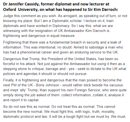 @OxfordDiplomat has commented powerfully on the case of Kim Darroch. We think what she has to say should be widely shared.#Darroch#KimDarroch#Darrochgate#BorisJohnson#Resistpic.twitter.com/SjBoYmiCAq