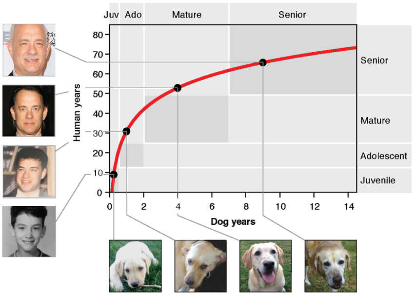 Cómo convertir la edad de un perro en la edad de una persona: 16 log (P) + 31, una mejor aproximación que la clásica de «multiplicar por 7» |