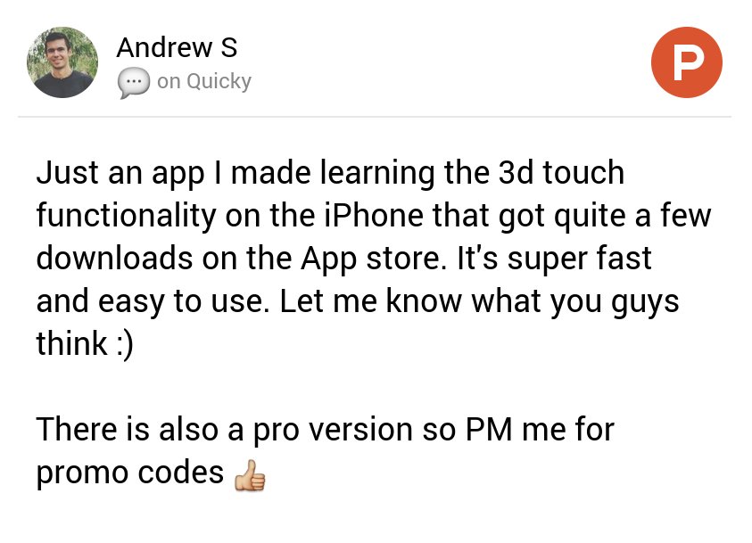 "@andrew_shini s thoughts on Quicky on@ProductHunt https://www.producthunt.com/tech/quicky#comment-361135 …" great work man, have any more codes?pic.twitter.com/S5Dsx8YQdA