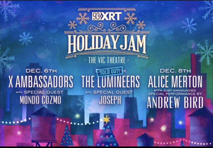 @93XRT Holiday Jam on Sunday, 12/8 with@AliceMerton. Tickets: http://93XRT.com/holidayjam pic.twitter.com/5Lhkci4fWL