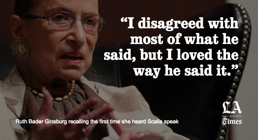 Ruth Bader Ginsburg on Antonin Scalia: "I disagreed with most of what he said, but I loved the way he said it."pic.twitter.com/fNLzhOomHD