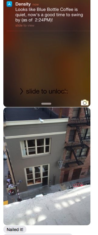 When your users check up on you… "Nailed it!" @densityio @bluebottleroastpic.twitter.com/s6rwHhpSri