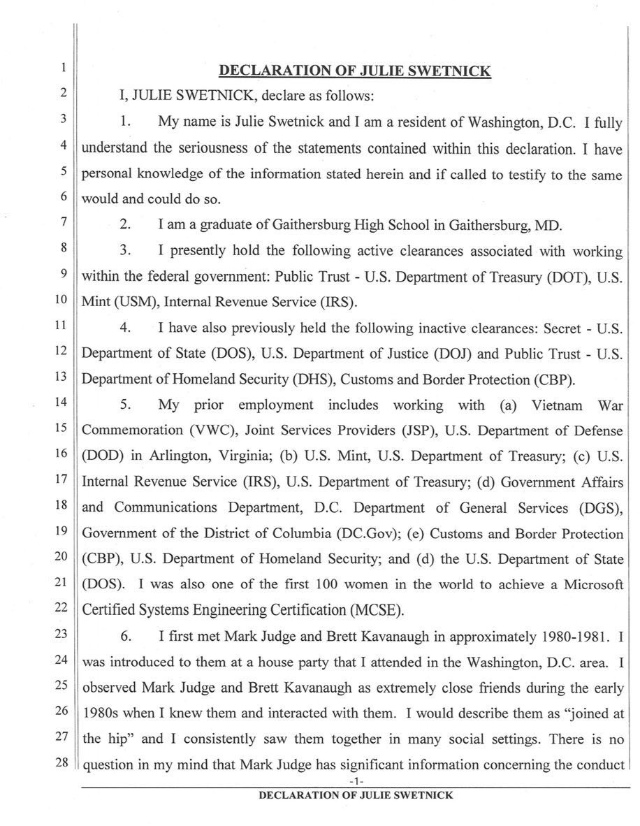 @MichaelAvenatti’s tweet from Sunday alleging Kavanaugh ran “trains” & “gang raped” women now comes to light with this latest declaration from someone who was at multiple parties with him & Mark Judge. This woman has had years of fed employment & holds multiple clearances.pic.twitter.com/RVbIeg4JQF