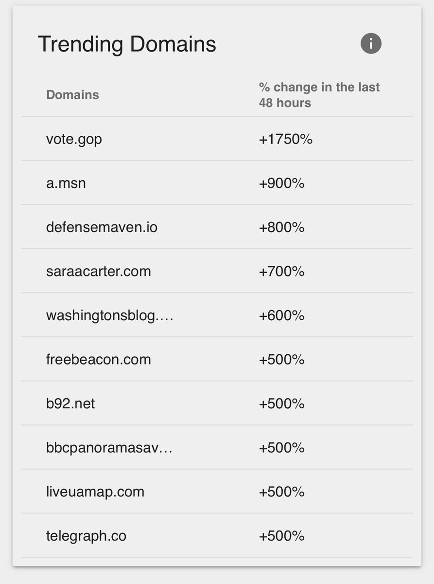 In the last 48 hours, Twitter accounts linked to Russian influence operations have been actively promoting #maga #Khashoggi #Russia & #JobsNotMobs. They’ve also been directing traffic to http://vote.gop , resulting in a 1750% increase in mentions from known Russian handlespic.twitter.com/qbd5qvXRjh