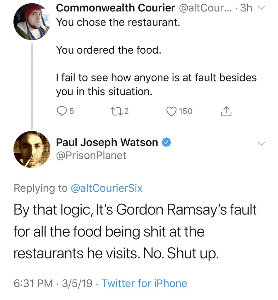 This brought tears to my eyes. What a great self-own.https://twitter.com/PrisonPlanet/status/1103113917302296583 …
