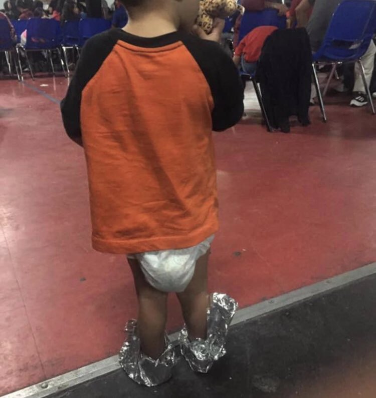 Standing outside in the TX heat, my feet (protected by socks and Adidas sneaks) felt like they were on FIRE. There are children crossing the border wearing sneakers w/o soles... some wearing aluminum foil