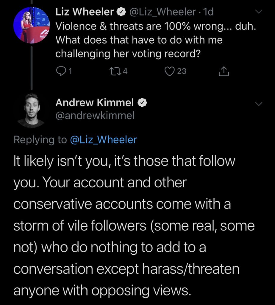 Can anyone at @OANN read? My tweet stands. I said it “likely” wasn’t what Liz said that caused a block from AOC. It’s the vitriol from her followers of whom I do blame. I’ve been threatened just asking Liz to report truthfully. Where does it mention the promotion of violence?