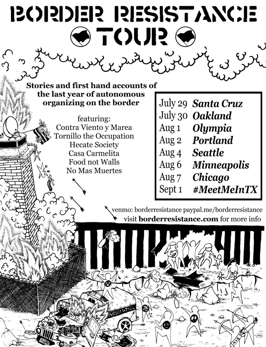 Antifa is leading a "Border Resistance" militancy training tour that will converge on a 10-day siege in El Paso, TX. The promotional image shows border enforcement officers being killed & government property fired bombed. Organizers asking for "white comrades" to pay for others.pic.twitter.com/zwG7iMLMZT