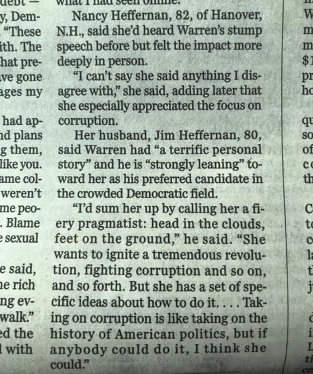 My parents saw @SenWarren in NH — and the @BostonGlobe interviewed them about their reactions.pic.twitter.com/bgwMJGX4TU