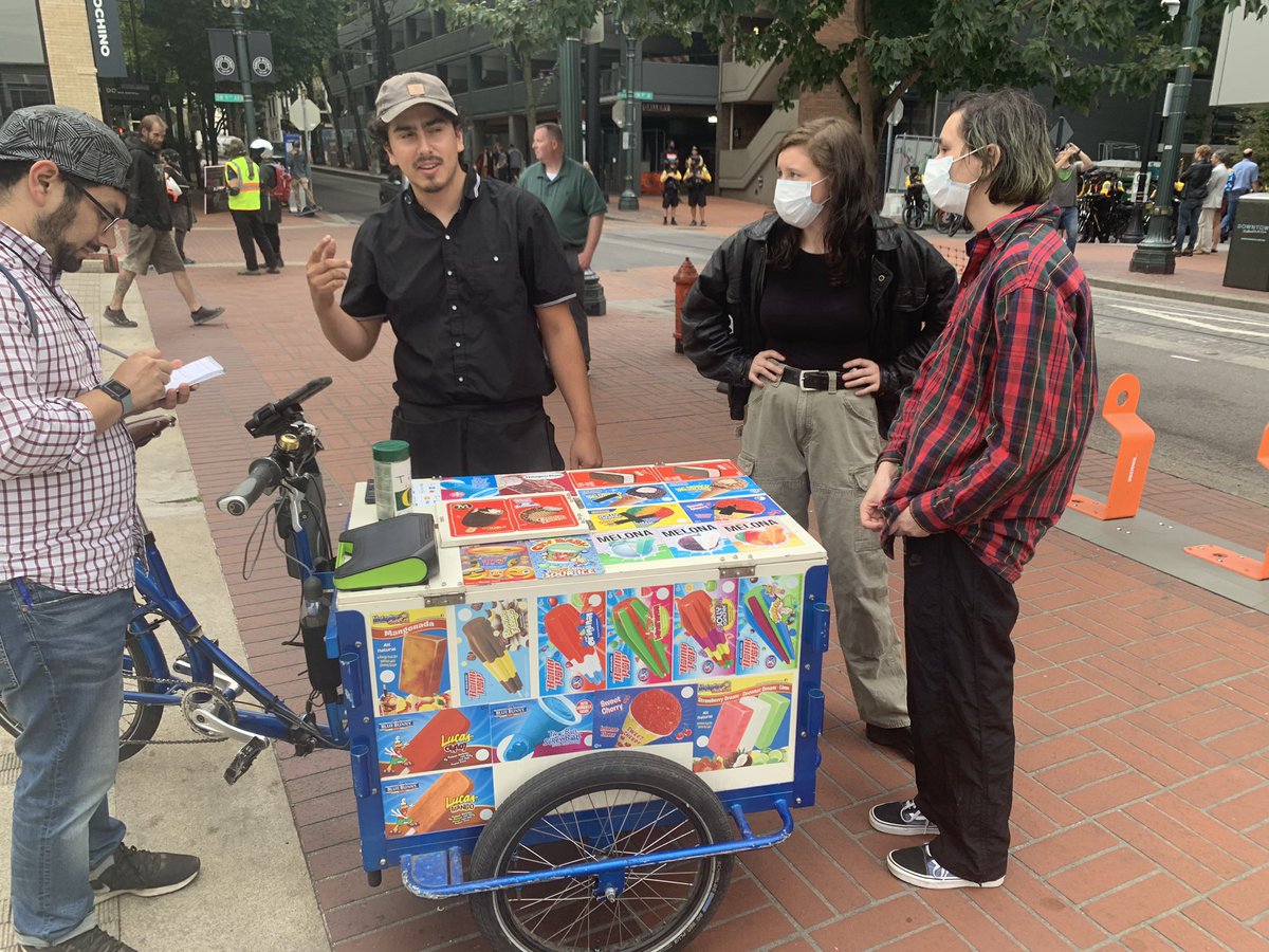 Dude is documenting while holding steady to his refreshing creamsicle. Gangster. #fucktheproudboys#PortlandProtestpic.twitter.com/d88gw9yPoK