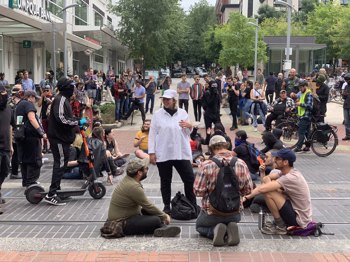 A number of protesters have now decided to hold another sit-in on the street at Park and Yamhill.