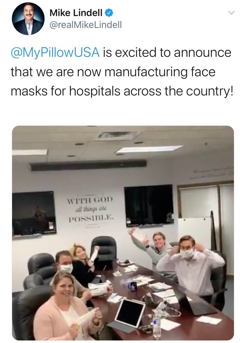 His company is making n95 masks in order to save lives dip shit.pic.twitter.com/a5P6tD9M1G