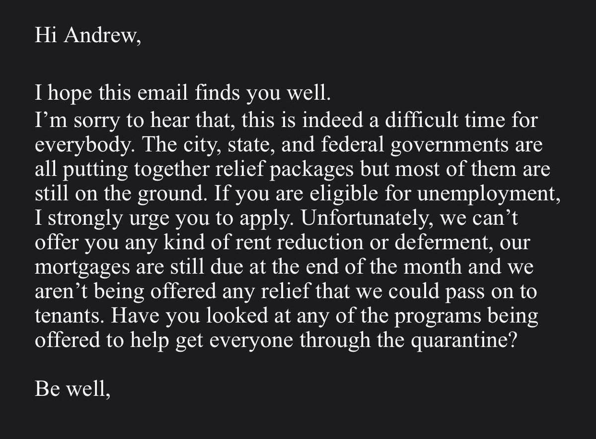 Bullsh*t. NYC has deferred mortgage payments for 90 days.