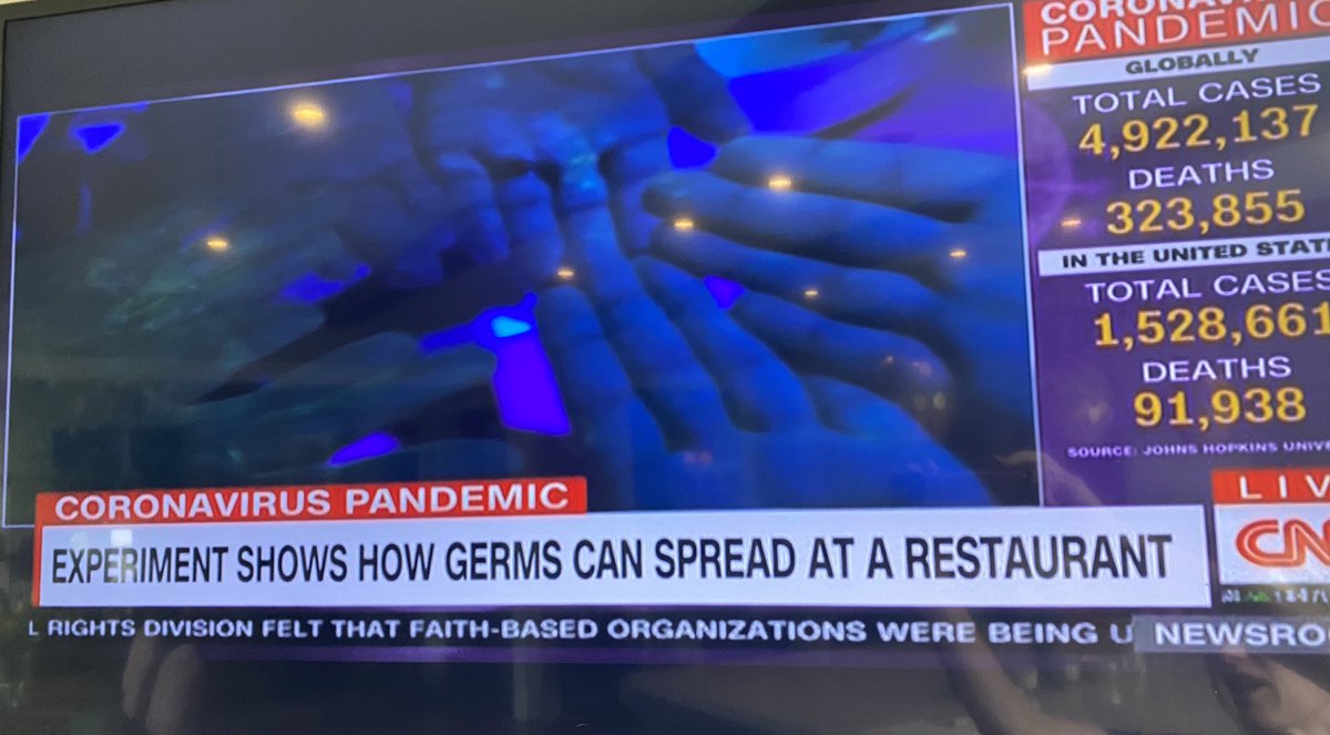 The more states start reopening, the more desperate @CNN is to scare people back inside. Germs are everywhere! Never eat in a restaurant again! #PanicPornpic.twitter.com/N8mNdrvQj6