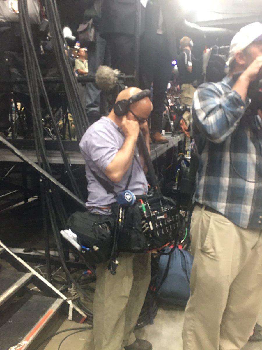 Trump team BLASTING music so loud it's deafening. EVERYONE covering ears.pic.twitter.com/uya0ztqAJ4