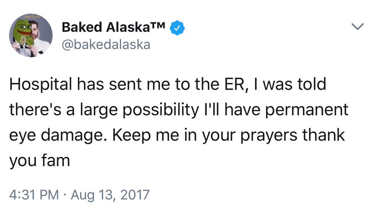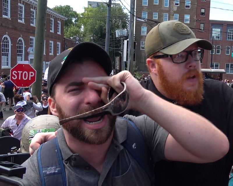 Poor snowflake got peppered. maybe his proclaimed *permanent eye damage* will show him how wrong racism & white supremacist attitudes are.