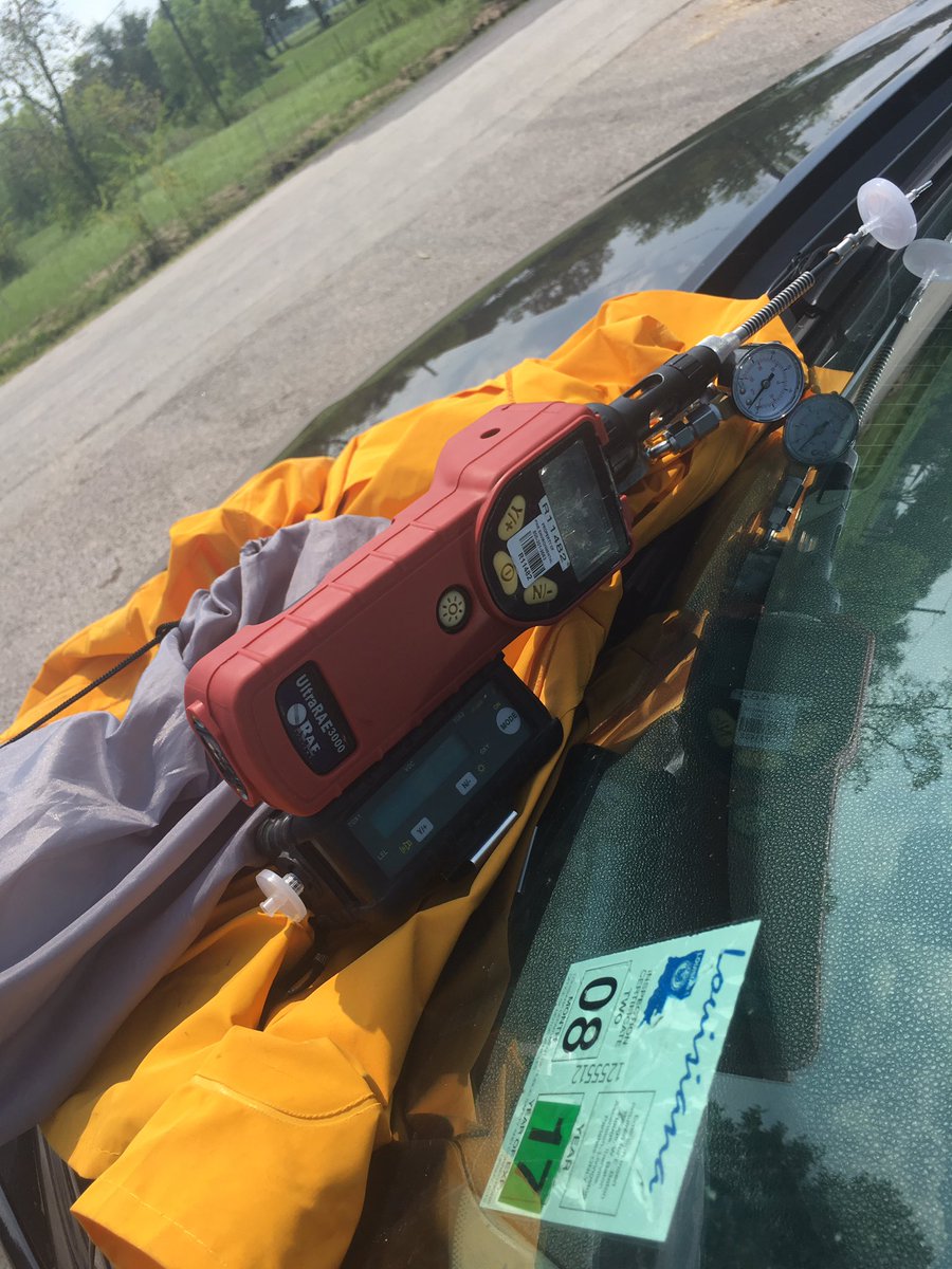 An employee from a Louisiana company called Technical Environmental Services (TES) is sitting in her car taking air samples. Says air is ok.pic.twitter.com/DpgdVde8qH