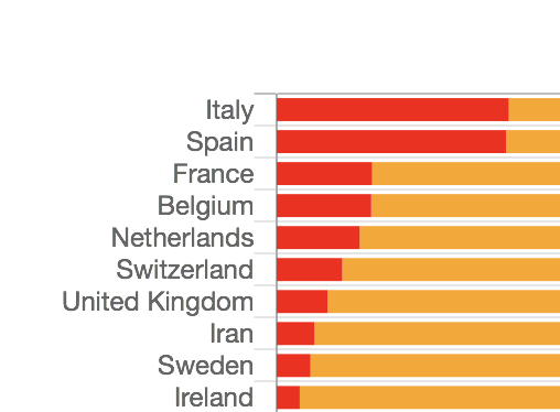 A new set of pages: pie charts to compare the number of confirmed coronavirus cases and fatal cases across different countries, states or regions: https://covid.observer/pie/