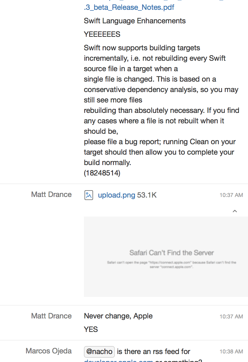 Paul Hudson@twostraws·Feb 9, 2015@andy_matuschak @khanacademy Incremental Swift builds! I imagine your team is over the moon :)11