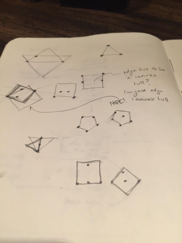 A minimum square bounding an isoceles triangle will suddenly flip 45 degrees as you increase the triangle width.