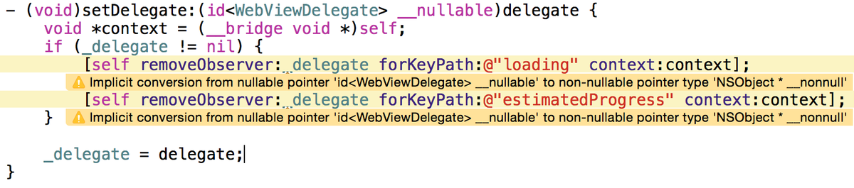 Carlos Ribas@cribasoft·Jul 16, 2015@soffes @andy_matuschak compiler can’t tell that testing against nil satisfies the __nonnull requirement? :(