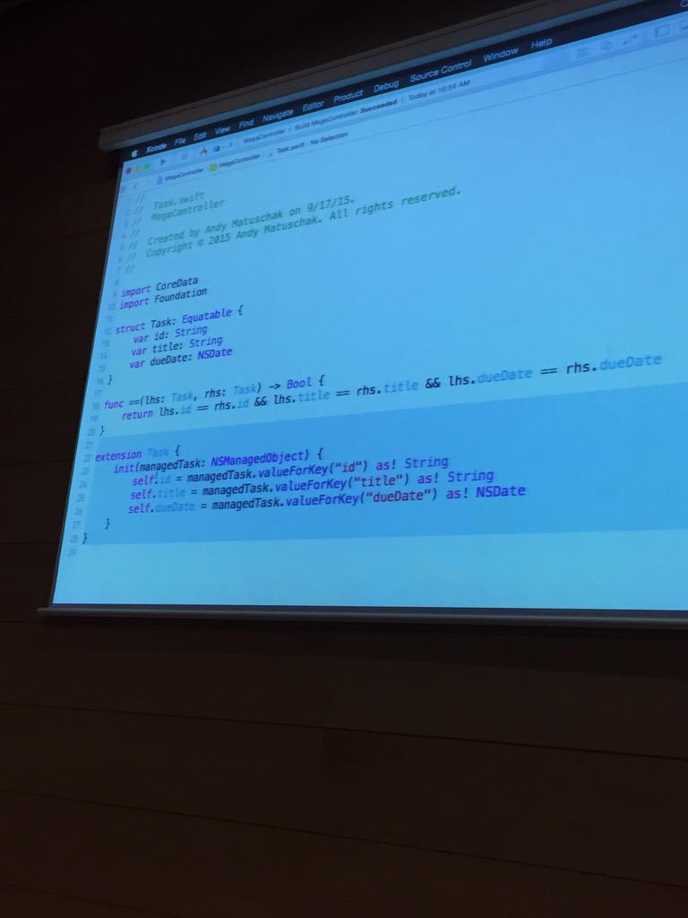 NatashaTheRobot@NatashaTheRobot·Sep 17, 2015Convert your CoreData NSManagedObjects into structs to avoid mutable state! 😍@andy_matuschak #NSSpain15 #swiftlang73594