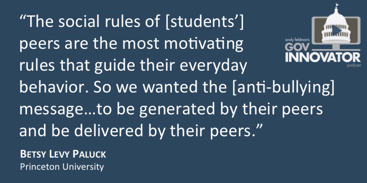 New interview: Prof. Betsy Levy Paluck on a peer-based strategy against bullying in schools http://govinnovator.com/betsy_levy_paluck/ …pic.twitter.com/5yjrBM0b8d