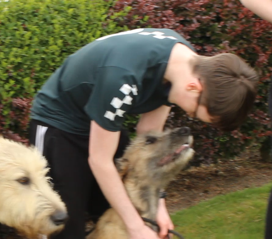 @Liam_OW @Eoghantd @M3WTS__OW with Irish Wolfhounds Marty, Saoirse (4 months old pup!) and Merlin at the Irish Wolfhound Society of Ireland dog show last month!