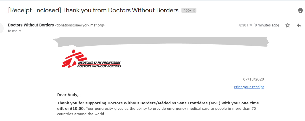 I'll match as well! Thank you!https://www.doctorswithoutborders.org/support-us/faq-donating?gclid=CjwKCAjwjLD4BRAiEiwAg5NBFnP2DjzIH5QWIaJDsbmLDTld4lDGPP73g7In-BdStftv7g9Ch0GHpxoCBloQAvD_BwE&source=ADD200U0U00&utm_source=google&utm_medium=cpc&utm_campaign=googlepaid&utm_content=brand …