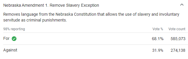 I'm glad Nebraska finally voted for slavery to end in their statepic.twitter.com/xm5GSosPWO