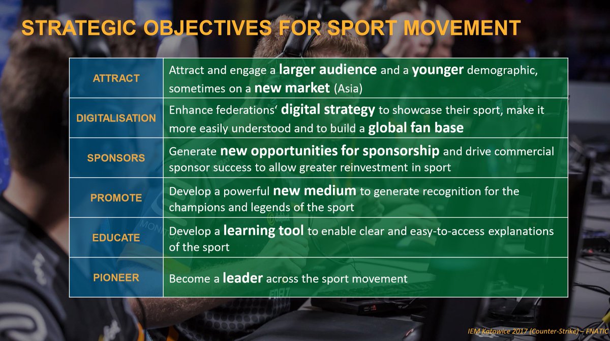 Sports Movement should embrace and develop a global and holistic approach wih esports. Not only see it as a marketing or communication tool!pic.twitter.com/FmhUofvVOC