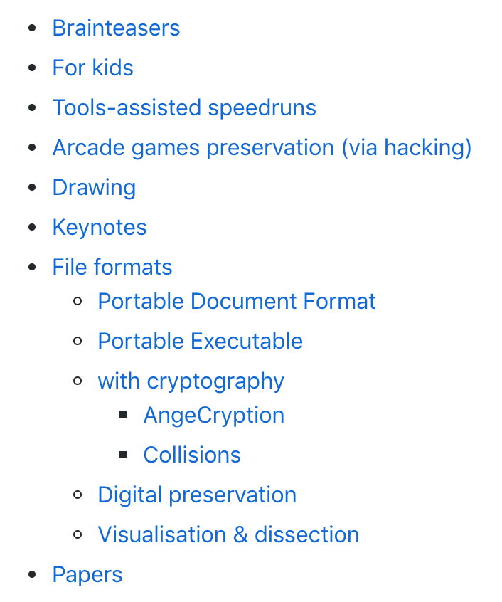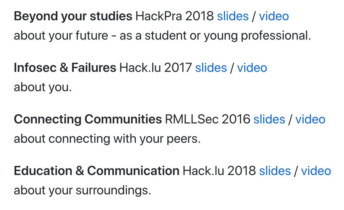 ICYDK I maintain an index of my workshops, keynotes, talks... https://github.com/corkami/docs/blob/master/talks.md …pic.twitter.com/zxD9pKHrDZ