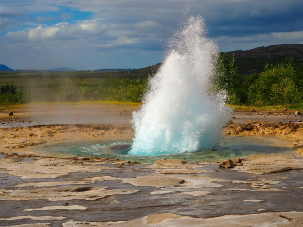 Strokkur geyser, Iceland. Geysir is one of the places visited on a bus journey across Iceland's F35 Highland Route. Read more at https://selfarrangedjourneys.com/iceland-route-f35 …