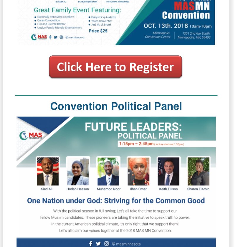ATTENTION MINNESOTA: On Sat Oct 13, 2018 (TOMORROW) @EllisonCampaign @keithellison who is running to be MN Attorney General, and @IlhanOmar, who is running for Congress, will be speaking @ an Islamic terror tied MSA conference: “Islam: The Guiding Light” https://www.masmn.org/2018-2/ pic.twitter.com/fYynOc8F03