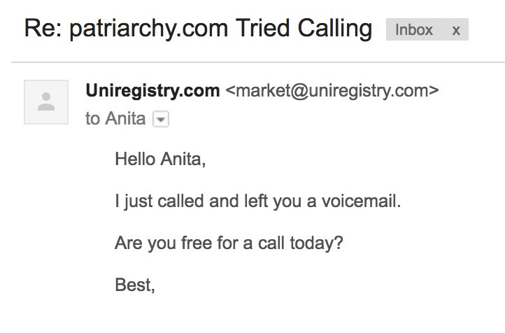 Patriarchy has gained sentience and is now emailing people. None of us could have prepared for this.