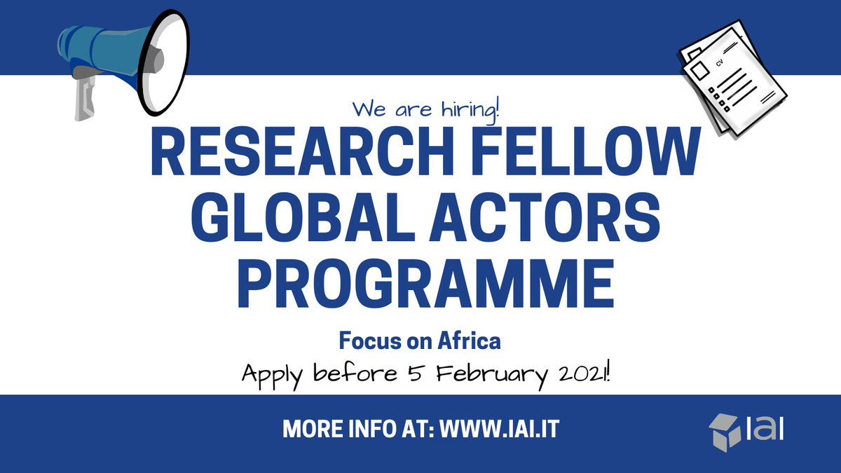 We are hiring! IAI offers a Research Fellow position within its Global Actors Programme, with a special focus on African domestic, regional and international trends