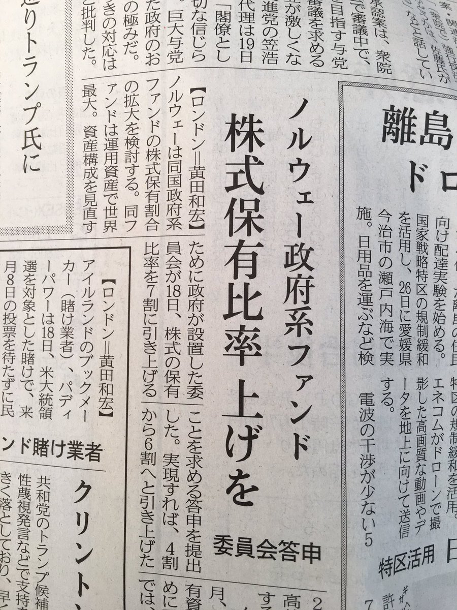 ノルウェーの政府系ファンドが株式保有比率を6割から7割に上げるらしいですが、まったく正しいと思います。5年やそこらの目先の価値が上がった下がったで一喜一憂しないで、徹底的に株式で長期保有する。国民の資産を守り増やす最もリスクのない方法だと思います。資本主義経済を肯定する限りwpic.twitter.com/n9mXlwsgLl