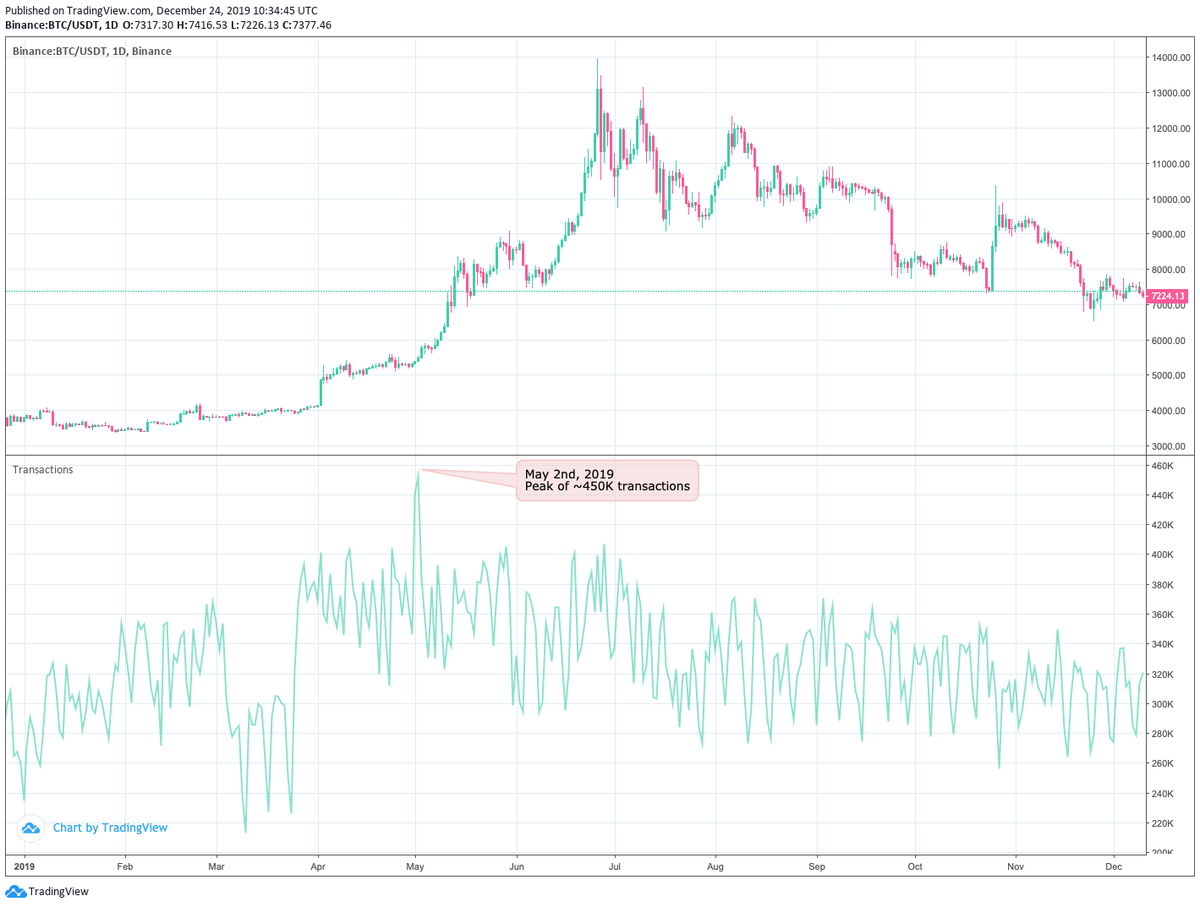 $BTC on-chain fundamentals in 2019. Interesting to see which metrics peak first in the lead up to the 19' price run May 2nd, 2019 On-chain transaction count --> ~450K BTC Price --> $5,462.44 Data@thetokenanalyst and charts from https://www.tokenanalyst.io/insights pic.twitter.com/JhKXLhQ2qg