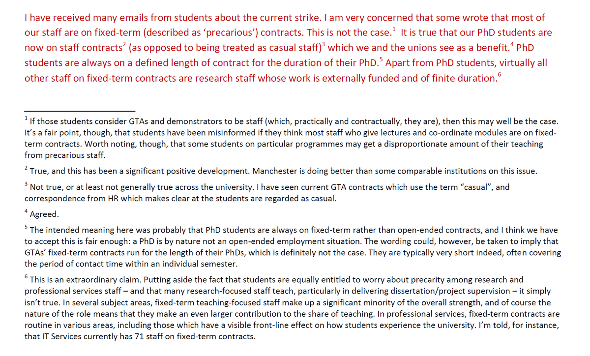 Manchester Uni VC claims "virtually all" fixed-term contracts are research staff. In 2017/18 (most recent available HESA data) Manchester Uni had: - 2,470 academic staff on fixed-term contracts (out of 5,120 = 48%) /1 https://www.hesa.ac.uk/data-and-analysis/staff/employment-conditions … 1/2https://twitter.com/JamesBSumner/status/1202865864997056512 …