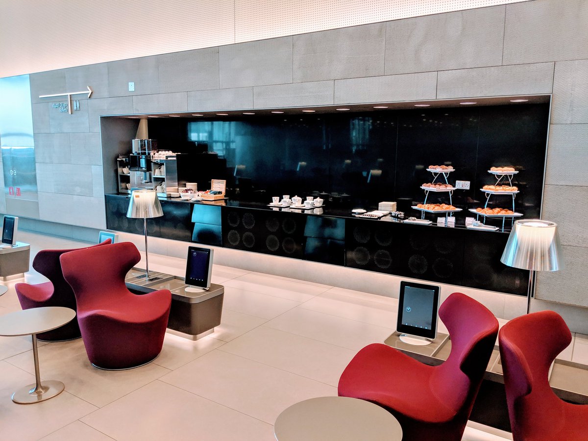 6) I'm now on my return leg & have eaten, showered, slept comfortably & had breakfast at the Al Mourjan Lounge. Wondering whether to go explore Doha for a second time, or spend the day playing games - they have PlayStations, Wiis and PCs with broadband! AND BOTTOMLESS SNACKS!pic.twitter.com/tSLGhLp705