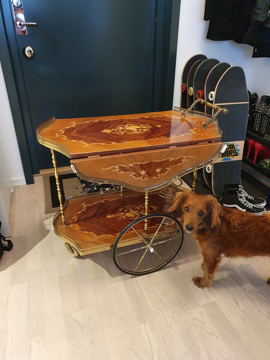 Rescued this gorgeous antique drinks trolley from the bin room in the basement today! It's in great condition but not quite my apartment's aesthetic unfortunately... So it found a loving home with @saracecilia instead! 😍 Who in their right mind throws away something like this?!pic.twitter.com/5KhzBfzZUZ
