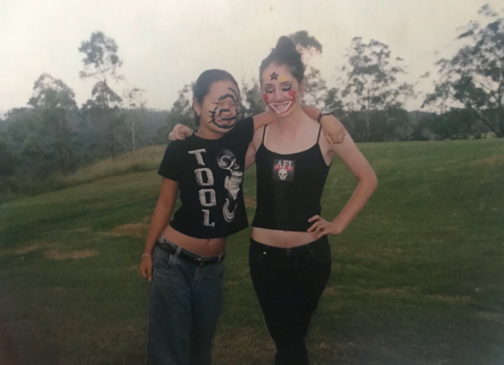 Circa ‘03/04 @estellaan and I enjoying the benefits of low rise jeans and face paint?pic.twitter.com/GbUINcKuKv