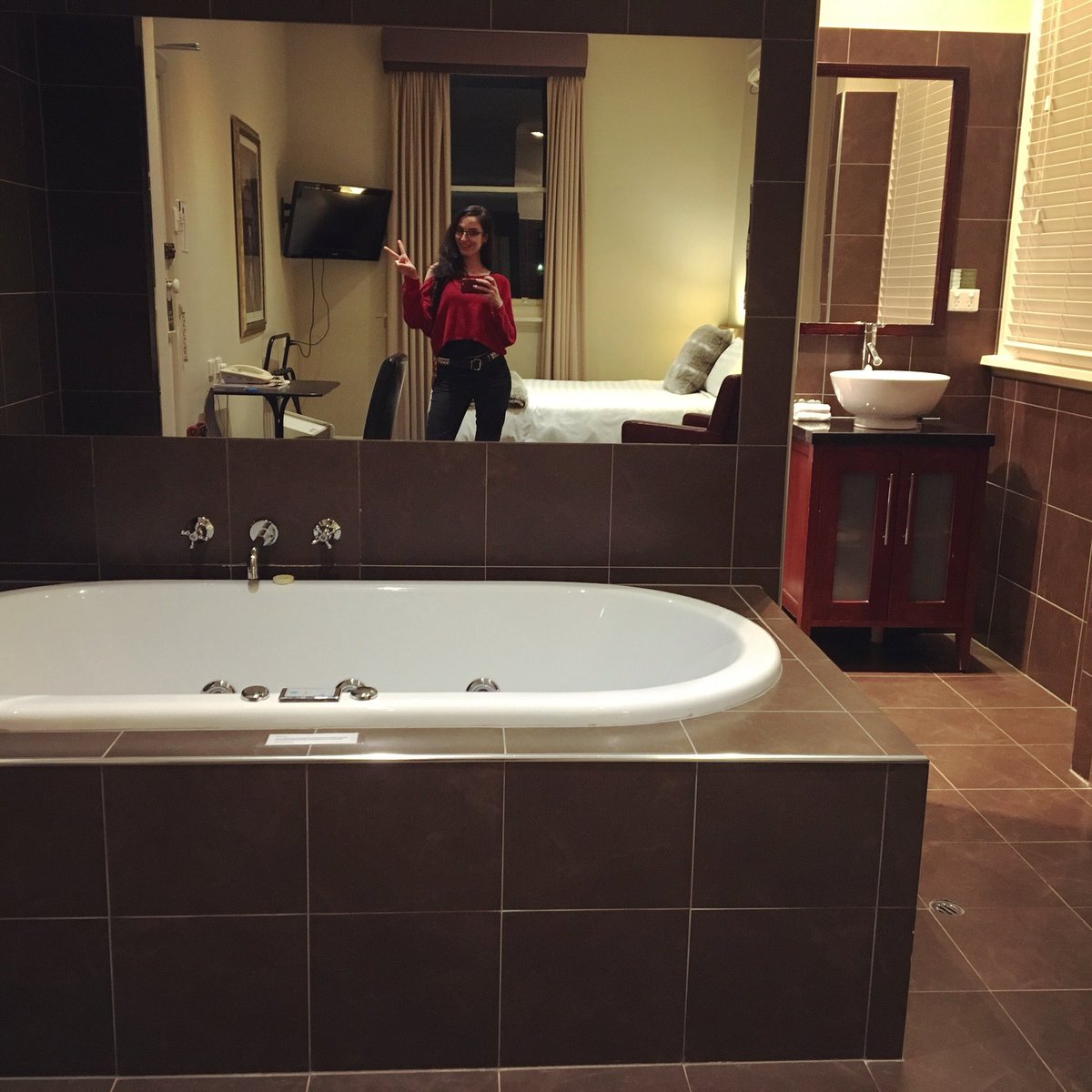 Best part about travelling for work is having a massive spa bathtub in your bedroom!