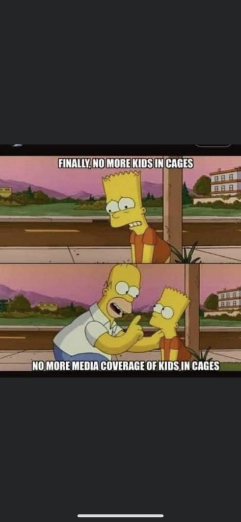 “No more kids in cages” Oh no this is all wrong. Lemme fix it “No, *more* kids in cages!”