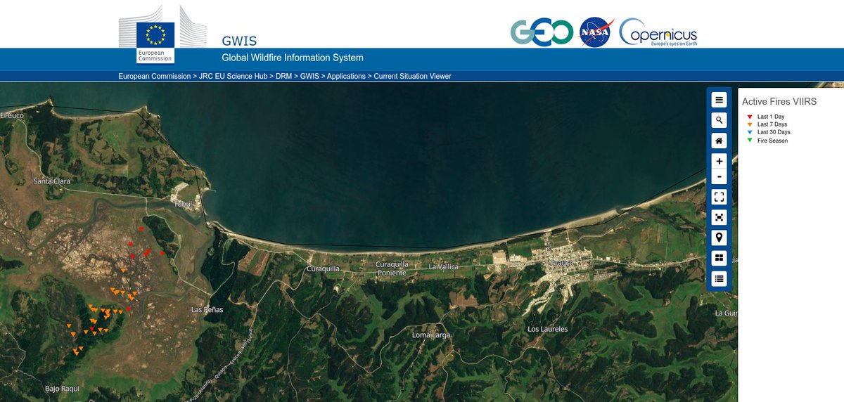 #GWIS detected a hotspot corresponding to a wildfire in Arauco, Chile (Biobío region) So did#Sentinel2