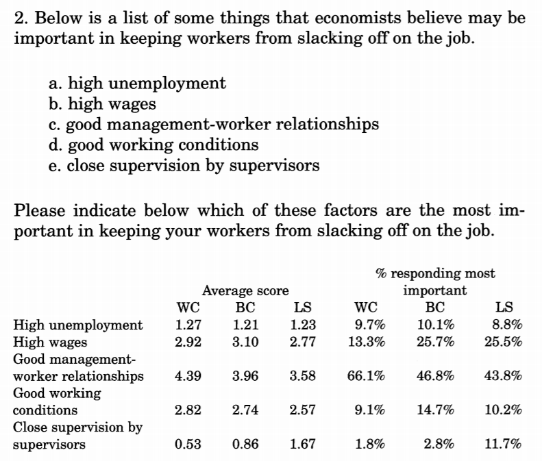 They conclude that " The most important results of this study are the strong support found for two explanations of wage rigidity: adverse selection as it applies to quits and the dependence of effort on wages" (6/6)