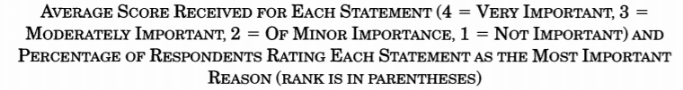 Notes: the survey was of 184 firms, including 111 large firms (from Business Week 1000). "BW" and "NBW" in the results stand for Business Week and Non-Business Week respectively. Importance scores are a score from 1 to 4, with 1 as "not important" and 4 as "very important".