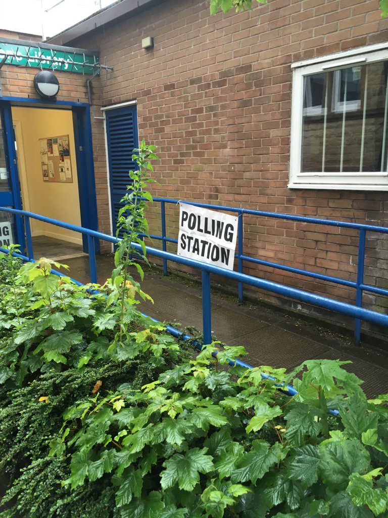 @anncoffey_mp in the rain!! Followed by 2 greyhounds who ran into polling station they were so keen