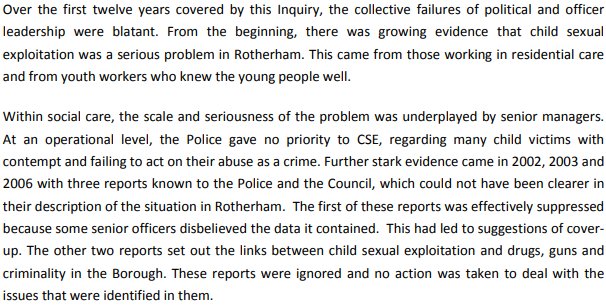 There really was a spectacularly disgraceful lack of action for many years. The wikipedia page is good. https://en.wikipedia.org/wiki/Rotherham_child_sexual_exploitation_scandal …